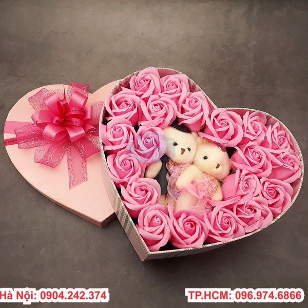 hộp trái tim hoa hồng