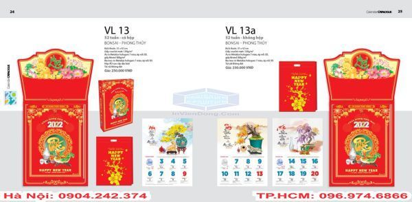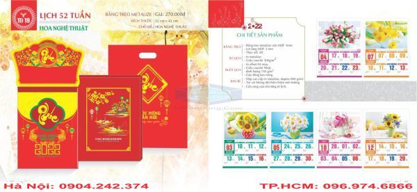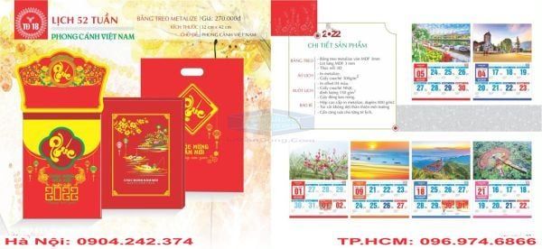 Quy cách in lịch tết bloc 52 tuần 2022: